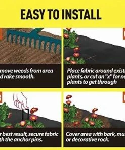 - Easy to install-easy to lay down and holds down with staples to the wind cut an x into the fabric with a pair of scissors in the desired location for new plants, dig a hole under the x and position the plant and then cover the roots with soil