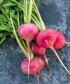 Champion Radish is smooth and round with bright scarlet skin and crisp, white flesh. Sizes up in a hurry, yet slow to become pithy. Approximately 500 seeds per packet. Ready to harvest in 25-days.