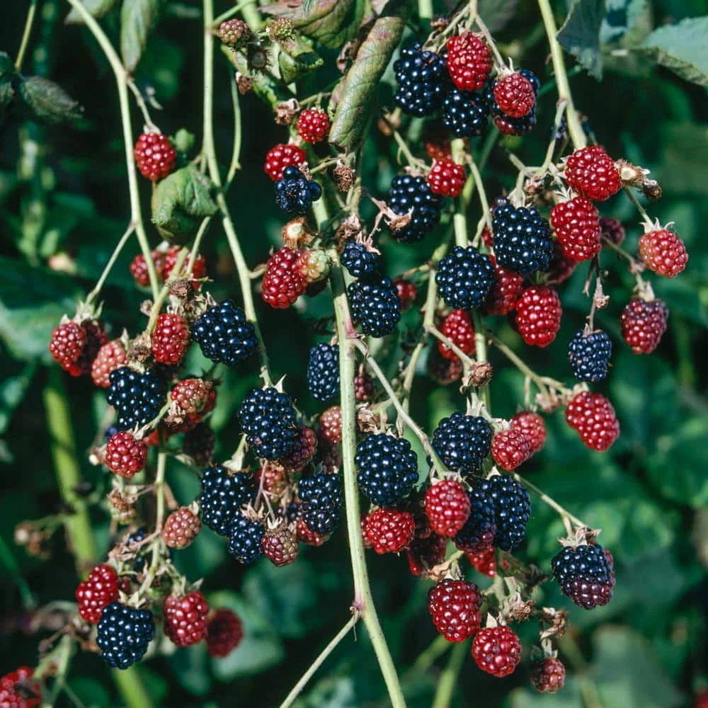 Thorn less, trailing type floricanes. High yields of medium, firm fruit with excellent flavor that ripens earlier than Columbia Star, but later than Columbia Giant. Multiple petaled flowers and pink buds are more attractive than most blackberries. Early ripening reduces exposure to blackberry fruit fly worms. Mature at 5 ft. to 8 ft. Zones 5-8.