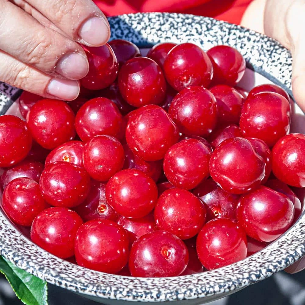 Wowza! Dwarf Cherry makes picking and enjoying cherries a breeze. Our newest bush cherry tree is naturally dwarfed and produces plenty of tart, red cherries that cook up beautifully in pies and desserts, no dyes needed. The fruits grow up to twice the size of our popular Carmine Jewel cherries. They have an excellent flesh-to-pit ratio, so you’ll have plenty to enjoy. Each plant yields up to 20 lbs. of fruit each season. Wowza. grows 5 ft. to 8 ft. tall, so netting, pruning and harvesting can often be done while standing on the ground. Plus, it can be grown in patio containers. Zones 2 to 7.