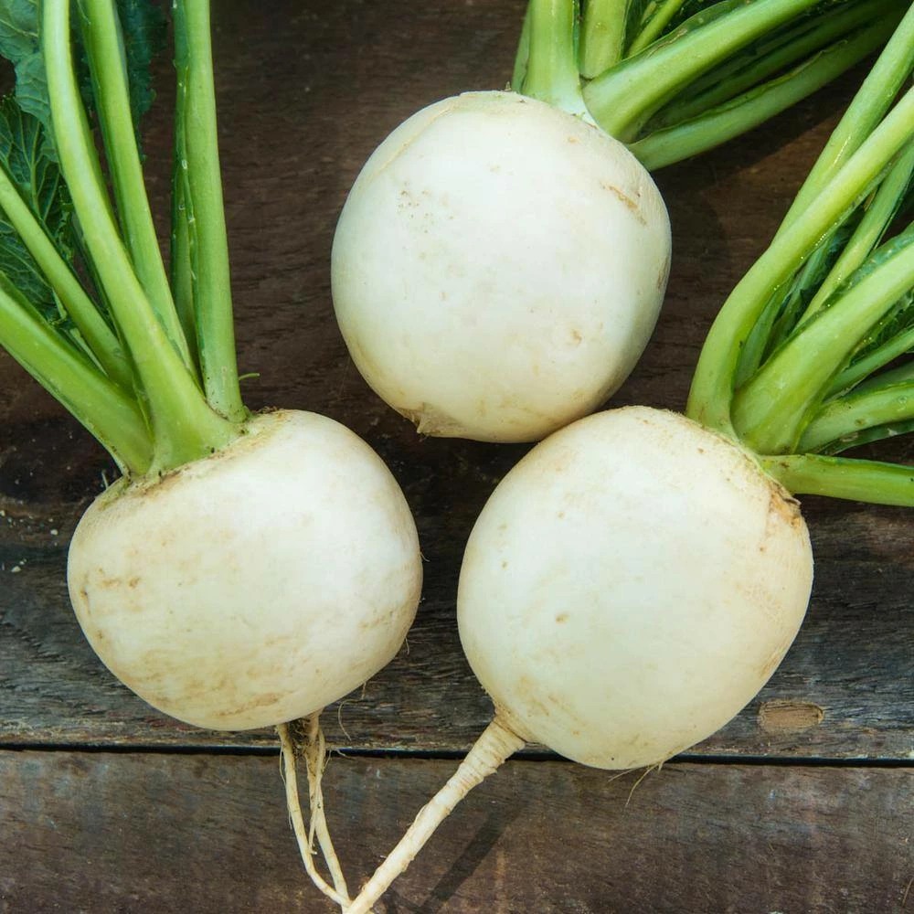 Amele Hybrid Turnip is our best-tasting turnip. It has 2 in. to 3 in. L snow-white roots that are incredibly sweet, crisp and delicious-and its vibrant green tops cook up wonderful with just enough of a peppery taste. The tops remain short, making it a good turnip variety for growing in greenhouses or tunnels. Amelie Hybrid Turnip is bolt-tolerant, so it’s a good choice for sowing in the spring or the summer garden.