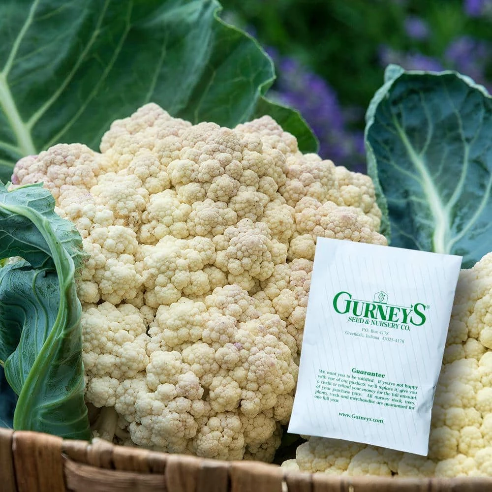Snow Crown Cauliflower vigor and rapid growth produces large, fully-domed curds with a mild and sweet flavor. One of the earliest of all the cauliflowers. Long wrappers provide excellent protection. Good for Fall and Spring planting. Heads are 7 in. to 8 in. across of snow-white quality and weigh approximately 2 lbs. Holds well in the field for longer harvesting and maintains its fine eating flavor. Tolerant to mildew. Ready to harvest in 55-days. Approximately 75 seeds per packet.