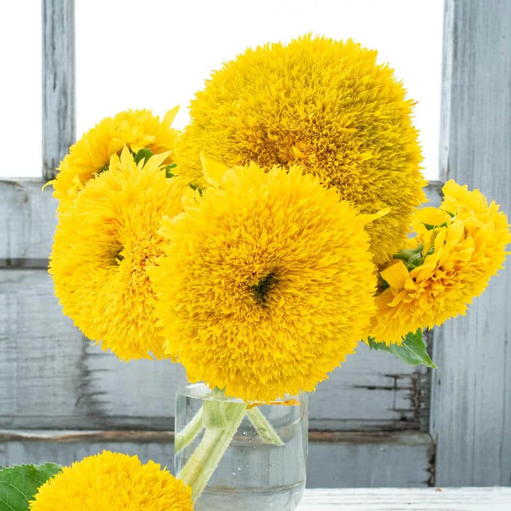 Golden Bear Sunflower produces 1 large main head and up to 10 smaller ones, each a double, fluffy, frilly bloom. Golden Bear grows up to 10 ft. tall and works well along a fence row or at the back of borders. Its flowers attract bees, birds and butterflies to your garden. The eye-catching flowers are beautiful in cut-flower arrangements as well as the garden. Each packet contains approximately 25-seeds. Directly sow Sunflower seeds in the garden or start them indoors. Although the stems are sturdy, they may need to be staked if planted in a windy area. Enjoy Sunny blooms within 100-days of planting.