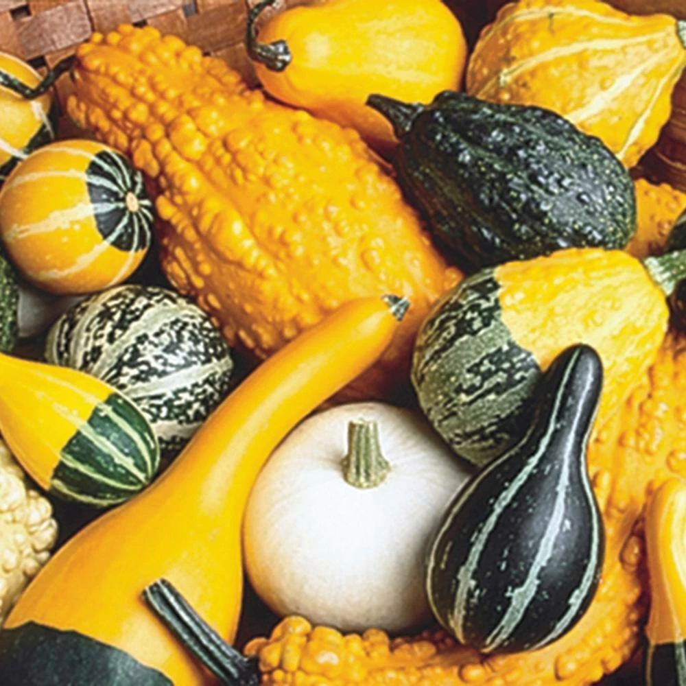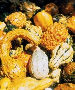 The large and small gourd mix is ideal for arts-and-crafts, display as fall decorations or for bringing to fall markets. Gourd mix comes in a wide range of sizes, shapes and colors. Approximately 30 seeds per packet. Ready to harvest in 80 to 100 days.