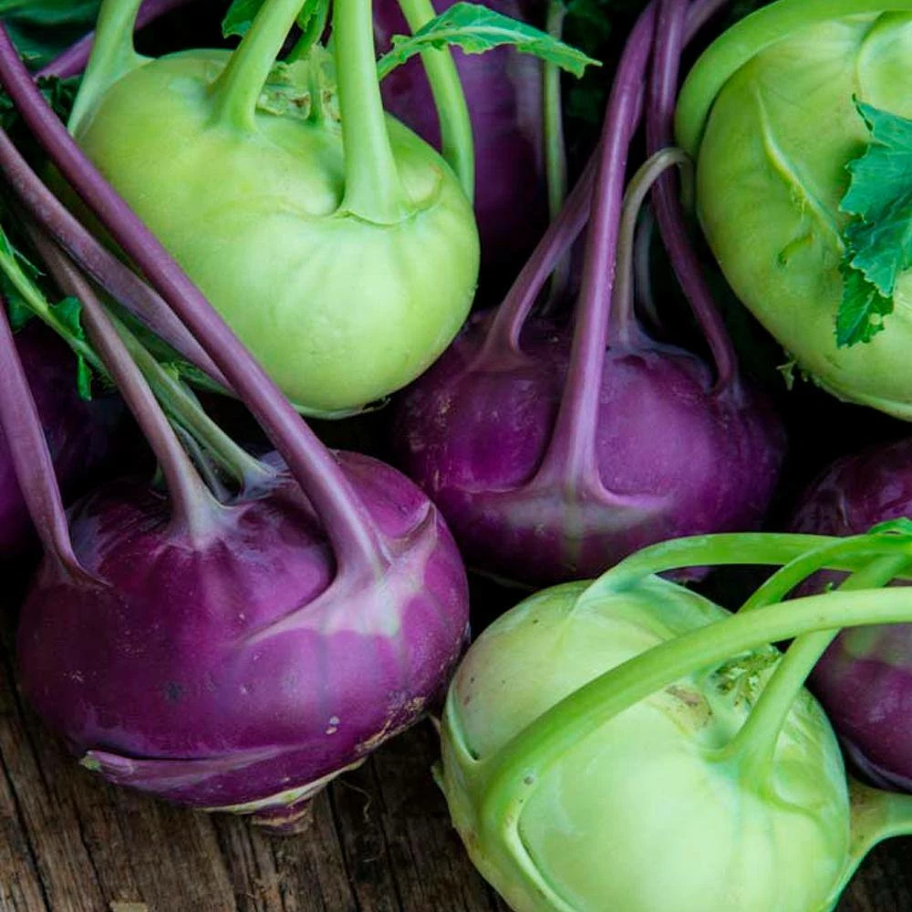Sweetie Hybrid Kohlrabi mix is the sweetest available. Its gorgeous color mix produces sweet, crisp and juicy bulbs. This mild-flavored mix does not have the spicy, cabbage like flavor that other varieties have. Excellent for eating raw, roasted, in soups and other recipes. Ready to harvest in 55-days. Approximately 100 seeds per packet.