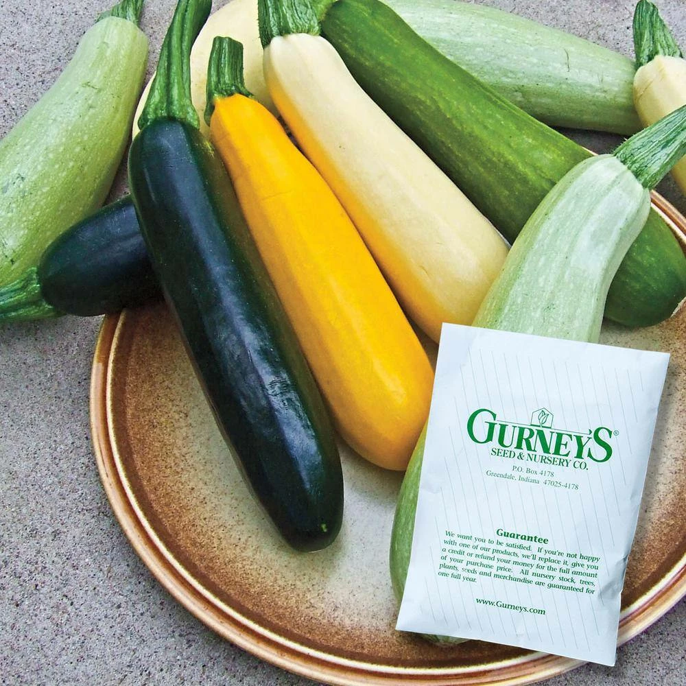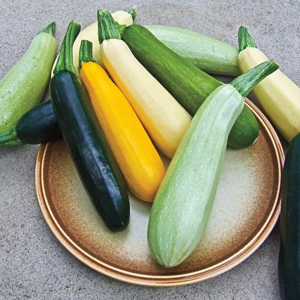 Summer Bounty Hybrid Summer Squash Blend is an outstanding mix of several varieties of summer squash. This mix contains several different hybrids, each producing squash with a different eye-catching shade of lime, butter, gold, gray or deep green. The plants have a spineless, open bush habit that allows for easy picking. They also exhibit excellent disease resistance and very high yields.