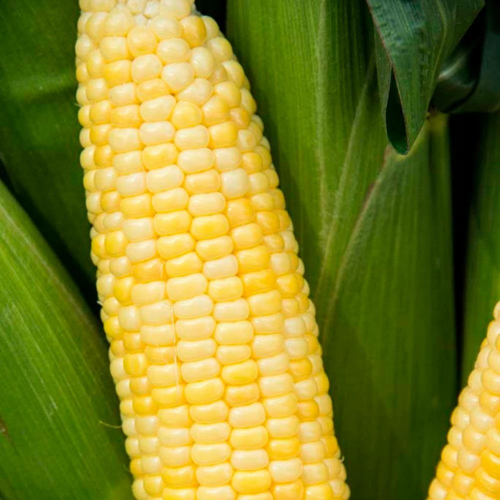 Inferno Hybrid Sweet Corn is an early-maturing, synergistic, yellow corn with an amazingly sweet, tender taste. It produces 16 to 18 rows of glossy, golden kernels that fill ears ranging in length from 7-1/2 in. to 8-1/2 in. The blunt-tipped ears are wrapped in handsome husks with long, attractive flag leaves. Tasty fresh, canned or frozen. Synergistic hybrids have high sugar content, tender-crisp texture and slow conversion of sugars to starches. When planting, isolate from super-sweet (sh2) and normal or high-sugar (su) hybrids. Plant seeds at a depth of 1 in. to 2 in., with 10 in. to 12 in. between plants and 36 in. between rows. For adequate pollination, plant corn seeds in blocks of at least 4 rows. Inferno corn prefers deep, well-drained, fertile soil and consistent moisture. Seeds germinate in 6-days to 10-days and corn matures in 73-days.