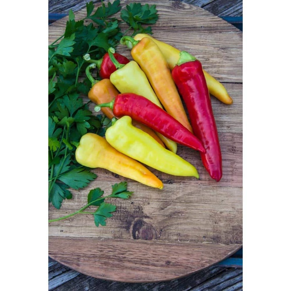 Sweet Banana Sweet Pepper is a delight that’s aptly named for its banana shape. These elongated, 6 in. peppers turn scarlet when fully ripe and are delicious in salads. They are exquisitely pungent when pickled with no bitter aftertaste. Sweet Banana is famous for its amazing yields. While the fruits can be harvested when yellow, their sweetness increases as they remain on the plant.