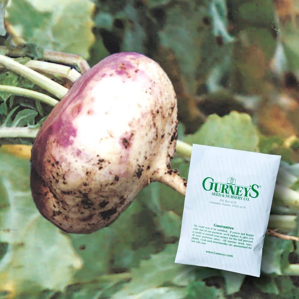 Purple Top White Globe Turnip is a large vegetable root that has dependable yields. The root is fine grained and gets as big as a softball. The favor is crisp, sweet and mild. The flavor is enhanced when harvested after the first frost. Stores well in a cool location. Ready to harvest in 55-days. Approximately 600 seeds per packet.