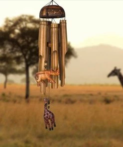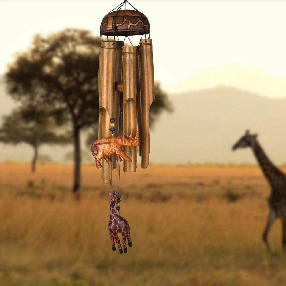 - Made With Long-Lasting Materials – This handcrafted, wind-activated chime resists most weather conditions. Made of hand-painted coconut top, hand-carved, hand-painted wood zebra and rhino clappers, giraffe windcatcher, 6 bamboo tubes