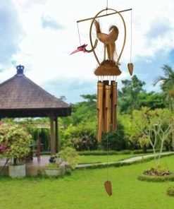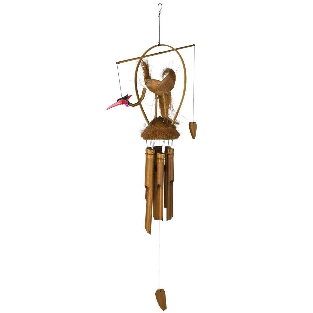 - Made With Long-Lasting Materials – This handcrafted, wind-activated chime resists most weather conditions. Made of coconut husk,hand-carved, hand-painted bird with sparkly earrings, 6 bamboo tubes