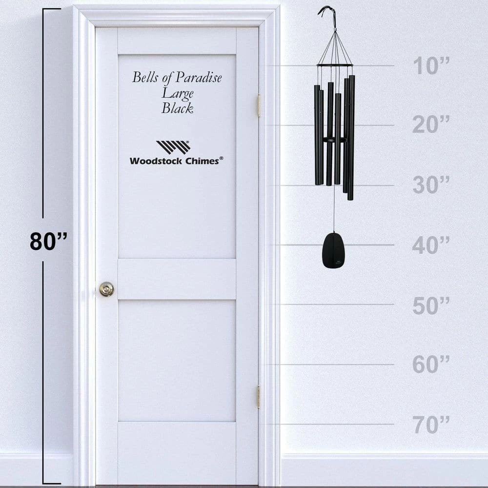 - A Perfect Gift – Ready to give in a kraft gift box, Woodstock Chimes’ Bells of Paradise – Black 44″ wind chime is a great Birthday, Anniversary, Bereavement, Memorial Day, Mother’s Day, Father’s Day, Wedding, Housewarming or Christmas gift
