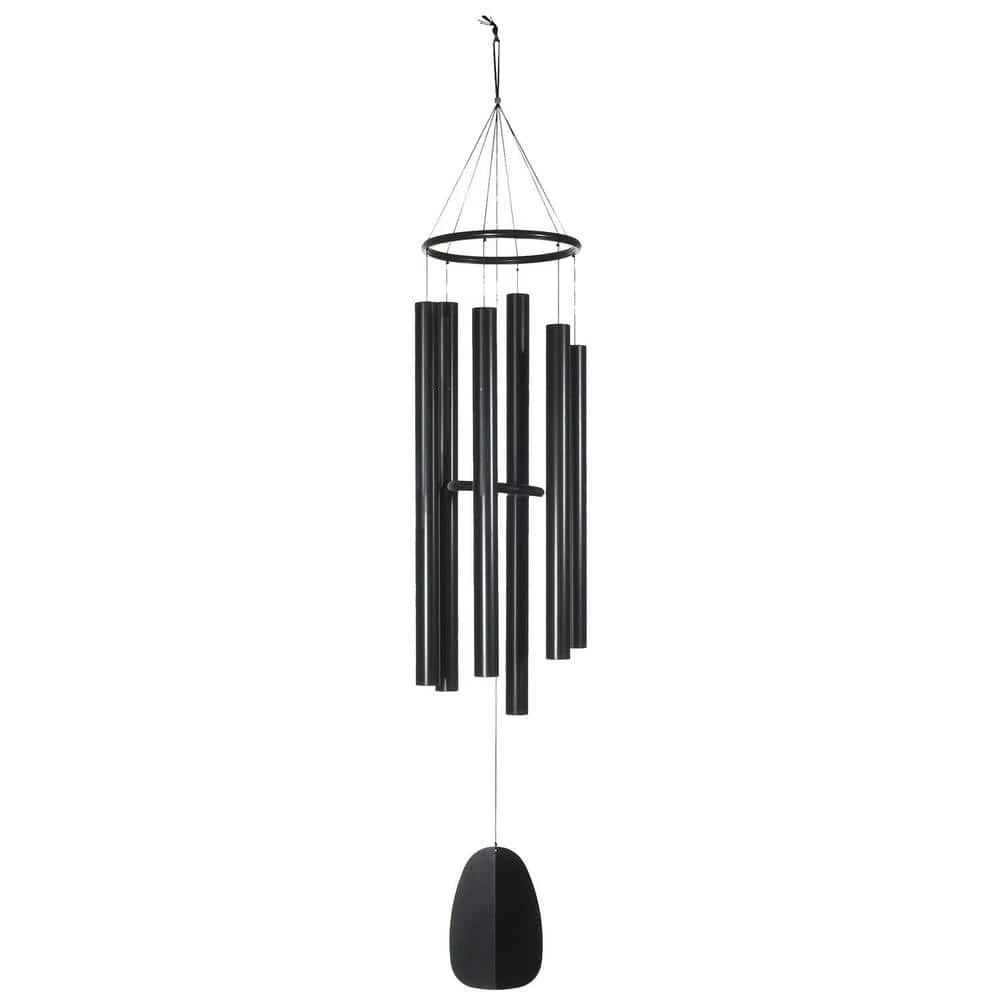 - Made With Long-Lasting Materials – This handcrafted, wind-activated chime resists most weather conditions. Made of black aluminum ring and windcatcher, 6 satin black aluminum tubes, styrene clapper