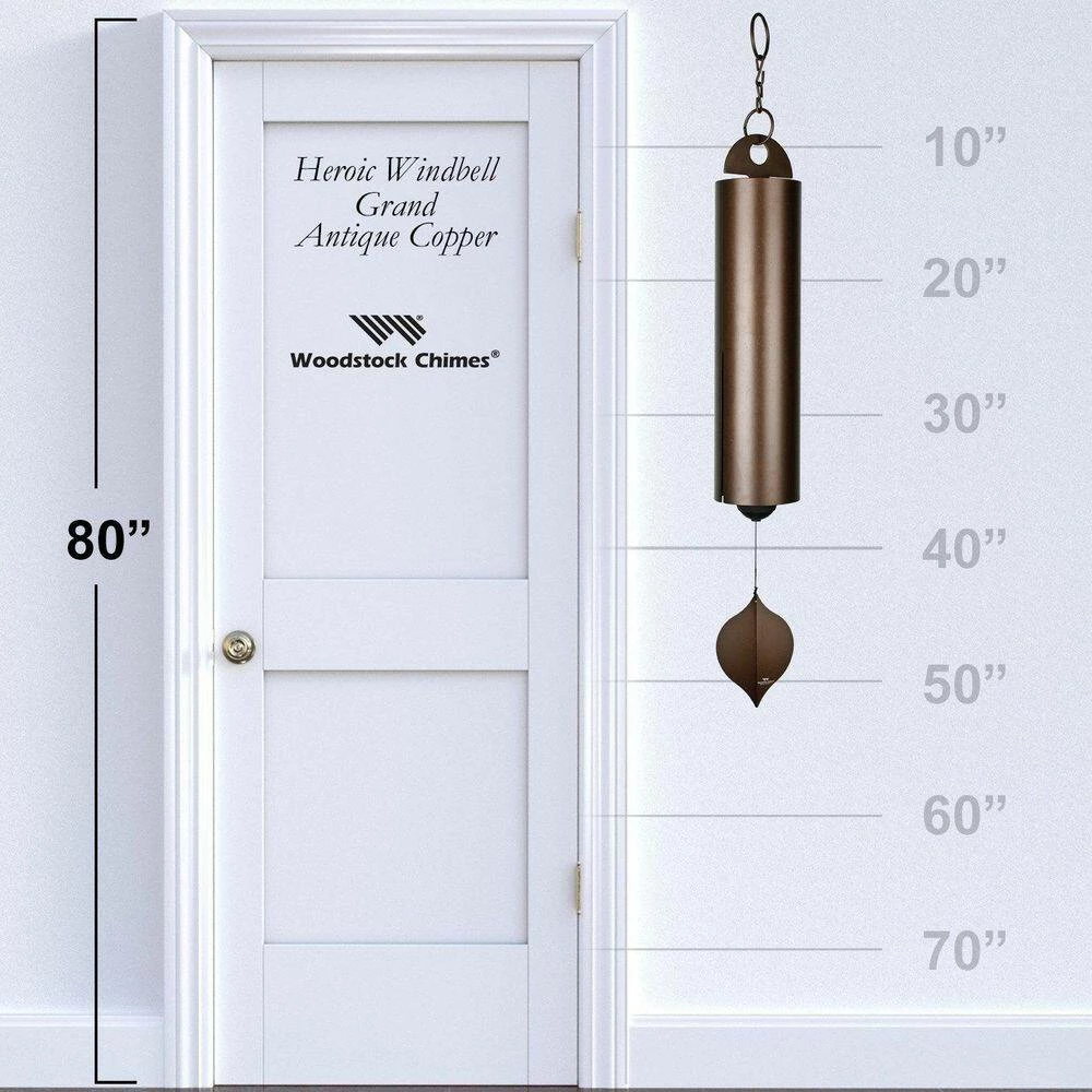 - A Perfect Gift – Ready to give in a corrugated cardboard carton, Woodstock Chimes’ Heroic Windbell – Grand, Antique Copper wind bell is a great Birthday, Anniversary, Bereavement, Memorial Day, Mother’s Day, Father’s Day, Wedding, Housewarming or Christmas gift