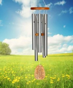 This chime offers a soothing mix of tones combined with an inspirational message on the windcatcher. Create a contemplative corner in your landscape or enhance your meditation garden with this elegant, serene chime. Features the Lord’s Prayer silkscreened on the windcatcher, which is removable so it can be customized: “Our Father, who art in heaven, hallowed be thy name. Thy kingdom come, thy will be done on earth as it is in heaven. Give us this day our daily bread. And forgive us our trespasses, as we forgive those who trespass against us. And lead us not into temptation, but deliver us from evil. Amen.” Part of our Woodstock Reflections line, a series of chimes designed for those who want to inspire others or themselves, remember the dearly departed or spend time in quiet contemplation. This chime is tuned to an ancient 5 note (pentatonic) tuning which sends the listener to a faraway place of peace and tranquility. Removable windcatcher for easy customization. This chime carries a lifetime tuning guarantee.