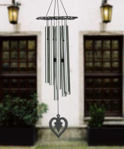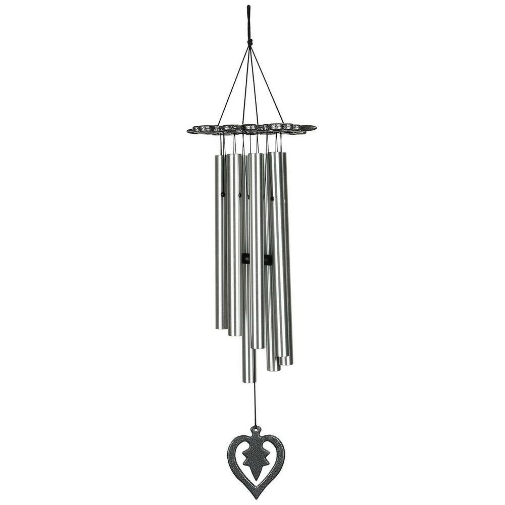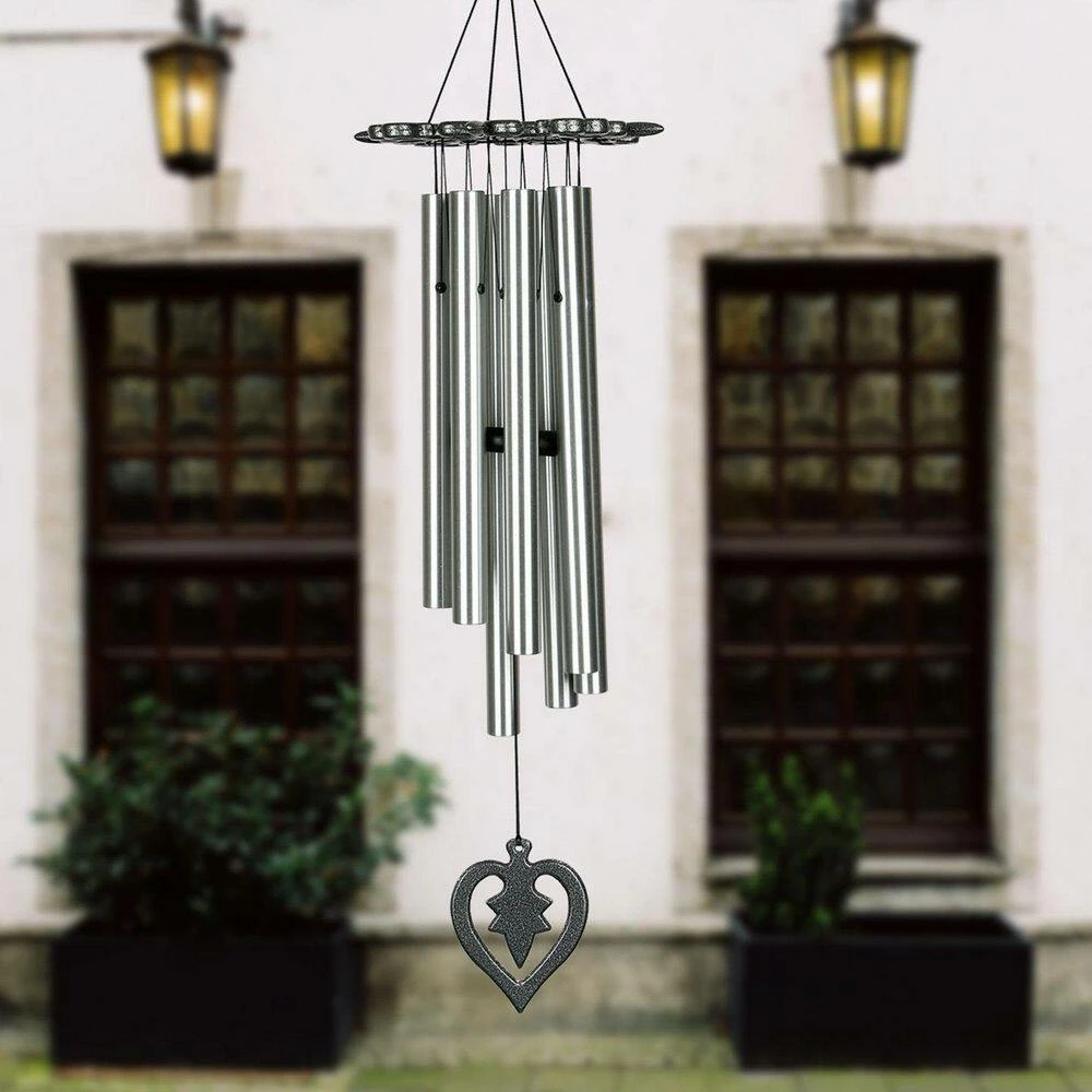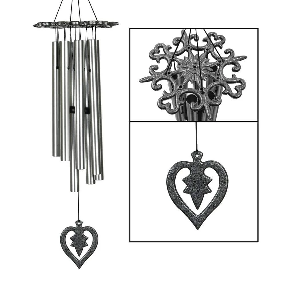 - Made With Long-Lasting Materials – This handcrafted, wind-activated chime resists most weather conditions. Made of antiqued silver cast aluminum top piece and windcatcher, 8 silver aluminum tubes