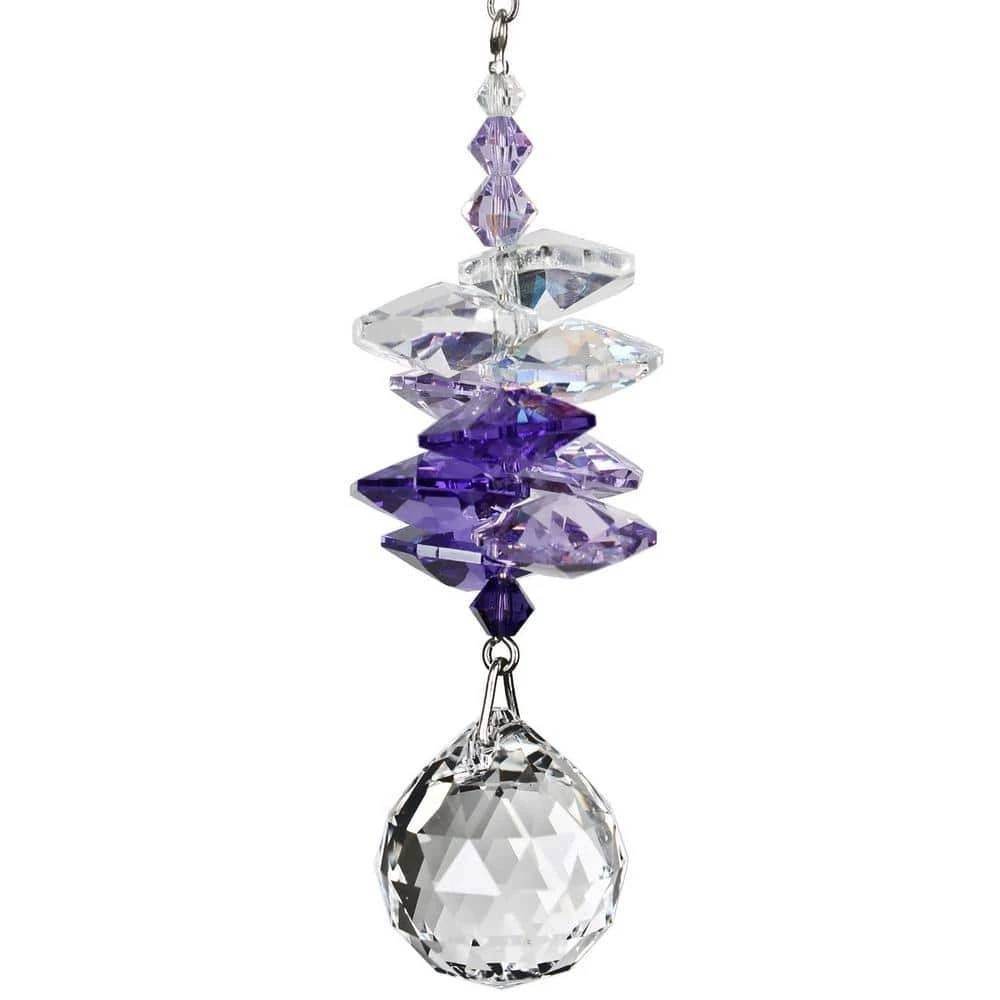 Our Crystal Sunrise Cascades feature a cascade of crystals that mimics the morning sky. Lighter color crystals lead down to darker ones, and are finished with a faceted genuine Austrian crystal ball. Works equally well as a suncatcher or Christmas ornament – or hang it in your office or dorm room, it’s especially beautiful when hanging in the window or in front of a light. Not boxed, instead it comes with a sheer organza gift bag. Recommended for indoor use. This product is handcrafted with pride in the U.K., therefore sizes can vary. Woodstock Rainbow Makers do for light what our chimes do for sound.
