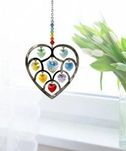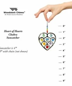 This silver heart of hearts is embellished with genuine Austrian crystals. This stunning ornament features a larger central crystal heart surrounded by smaller crystal hearts in the colors of the 7 Chakras. All are faceted for maximum shimmer and shine. Hang this beauty in a window and enjoy the sparkle. Not boxed, instead this crystal suncatcher comes with a sheer organza gift bag. Recommended for indoor use. Woodstock Rainbow Makers do for light what our chimes do for sound.